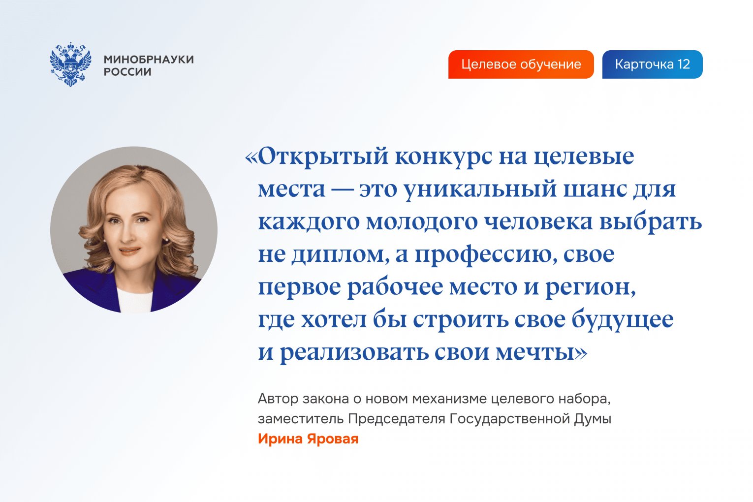 Подавать документы в рамках целевого приема можно только в 1 (один) вуз на 1 (одно) направление подготовки.